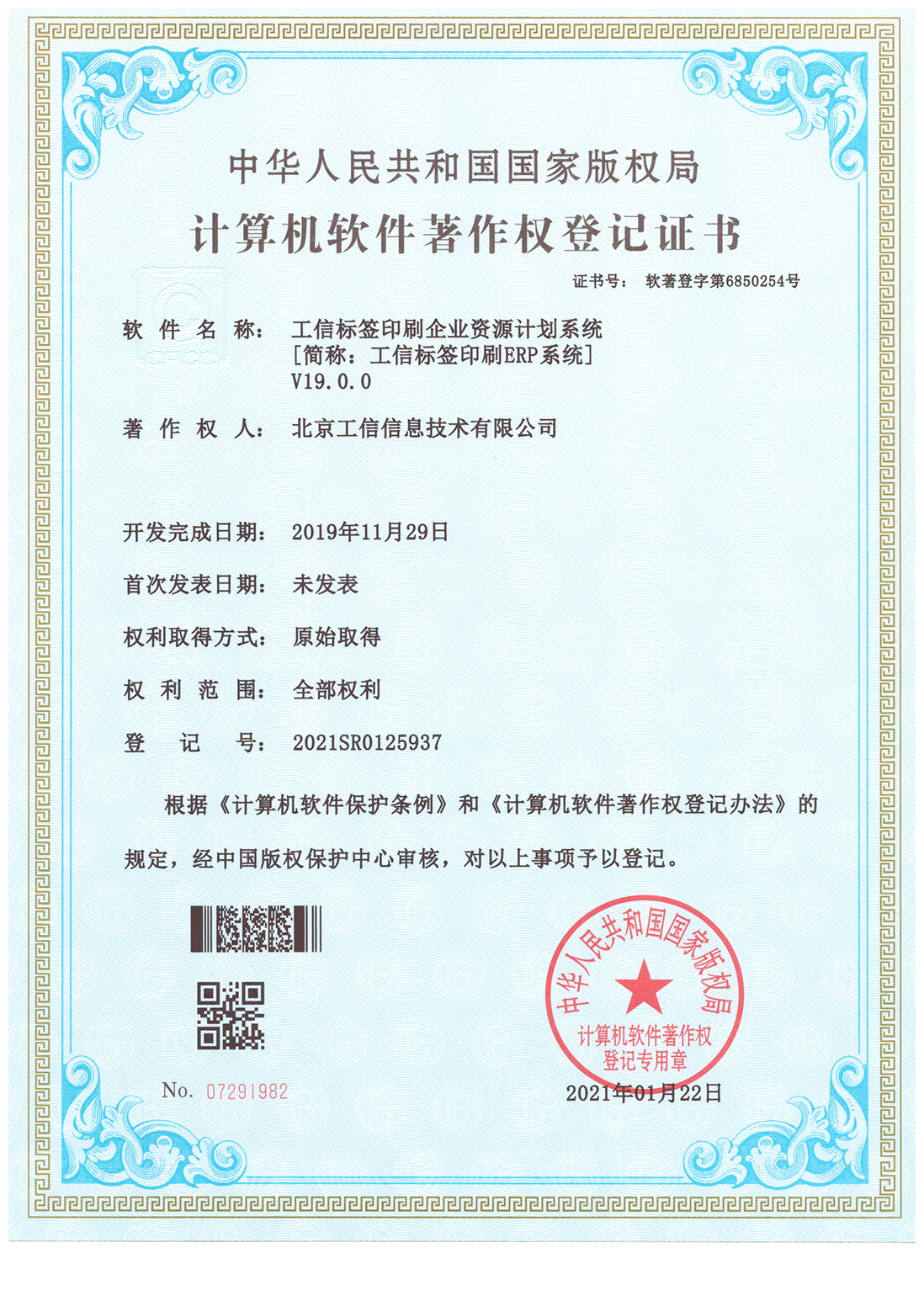 2011年4月,公司获批与中国地质大学软件学院合作成立了“共青团中央大学生就业创业实习基地”,成为中国地质大学历史上第二个授予市级“共青团中央大学生就业创业实习基地”的公司,进一步加强了公司的技术研发力量。为了保持工信ERP系列产品对印刷行业技术和管理方向的把握,公司与北京印刷学院等全国多所印刷院校,与科印传媒、必胜网等行业媒体及各地印刷协会与设备厂建立了紧密的合作关系,或者成为了会员。此外,公司一直在印刷包装领域研究深耕,截止目前,已拥有19个软件产品的著作权证。